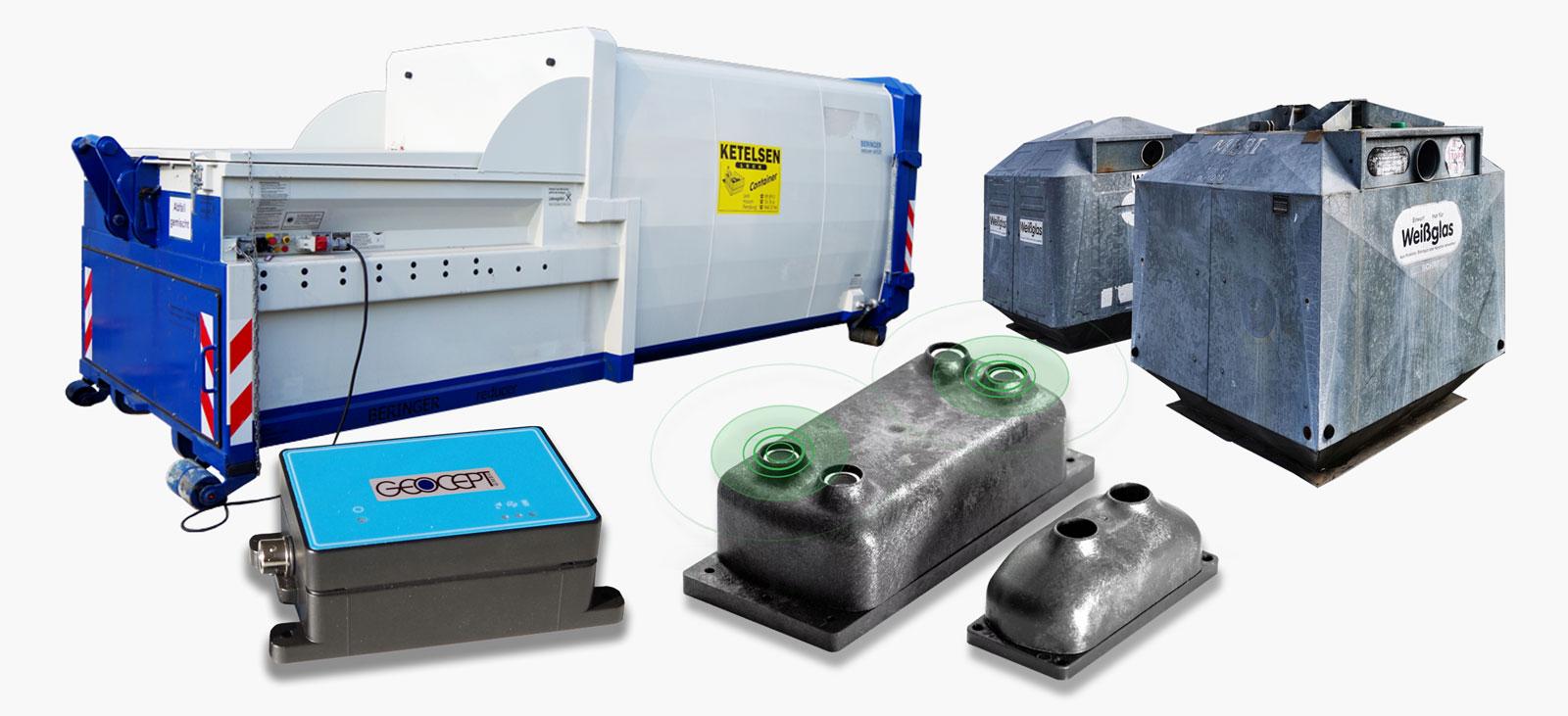 Wir statten Behälter ab 120l mit Ultraschall-Sensoren aus und mobile Pressen mit dem GEOCEPT Pressen-Tracker. Die Technologien für unterschiedliche Behälterarten und Messverfahren haben beide die Aufgabe Füllstände in das GEOCEPT Webportal zu übertragen und bedarfsgerechte Leerungen in Touren zu organisieren - siehe Büro-Software-Modul "Füllstandsmonitoring"